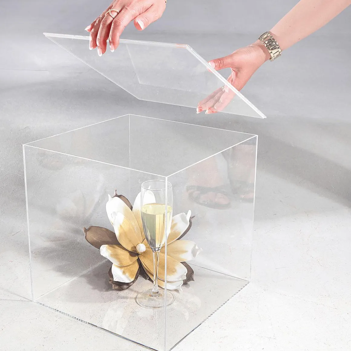 Diese elegante Acrylbox verleiht wertvollen Objekten wie Sammler- und Ausstellungsstücken eine besondere Ausstrahlung. Als Schutz gegen Staub und Beschädigungen. Sie schützt Ihre Ware vor äußeren Einflüssen und ist perfekt für den Gebrauch in Ausstellungen, Galerien oder auf Messen. Als Aufbewahrungsbox mit praktischem Deckel ist die Würfelbox aus glasklarem Acryl ebenso praktisch. Um Kratzer beim Transport zu vermeiden, ist eine farbige Schutzfolie angebracht, die sich leicht abziehen lässt. Materialstärke: 3 mm. Preis per Stück.