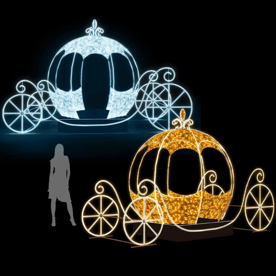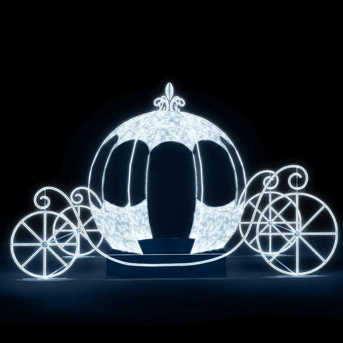 Erleben Sie Ihr eigenes Märchen mit unserer XXL LED-Kutsche. Mit ihrer Form wie aus dem Märchen Cinderealla ist sie ein besonderes Dekorationsobjekt für Hochzeiten. Nicht nur die Braut wird sich mit ihrem Prinzen wie die Hauptperson in einem Märchen fühlen, sondern auch die Gäste werden begeistert sein. Kombiniert mit unseren XXL LED-Pferden runden Sie das Ganze ab und erzeugen einen noch realistischeren Effekt.