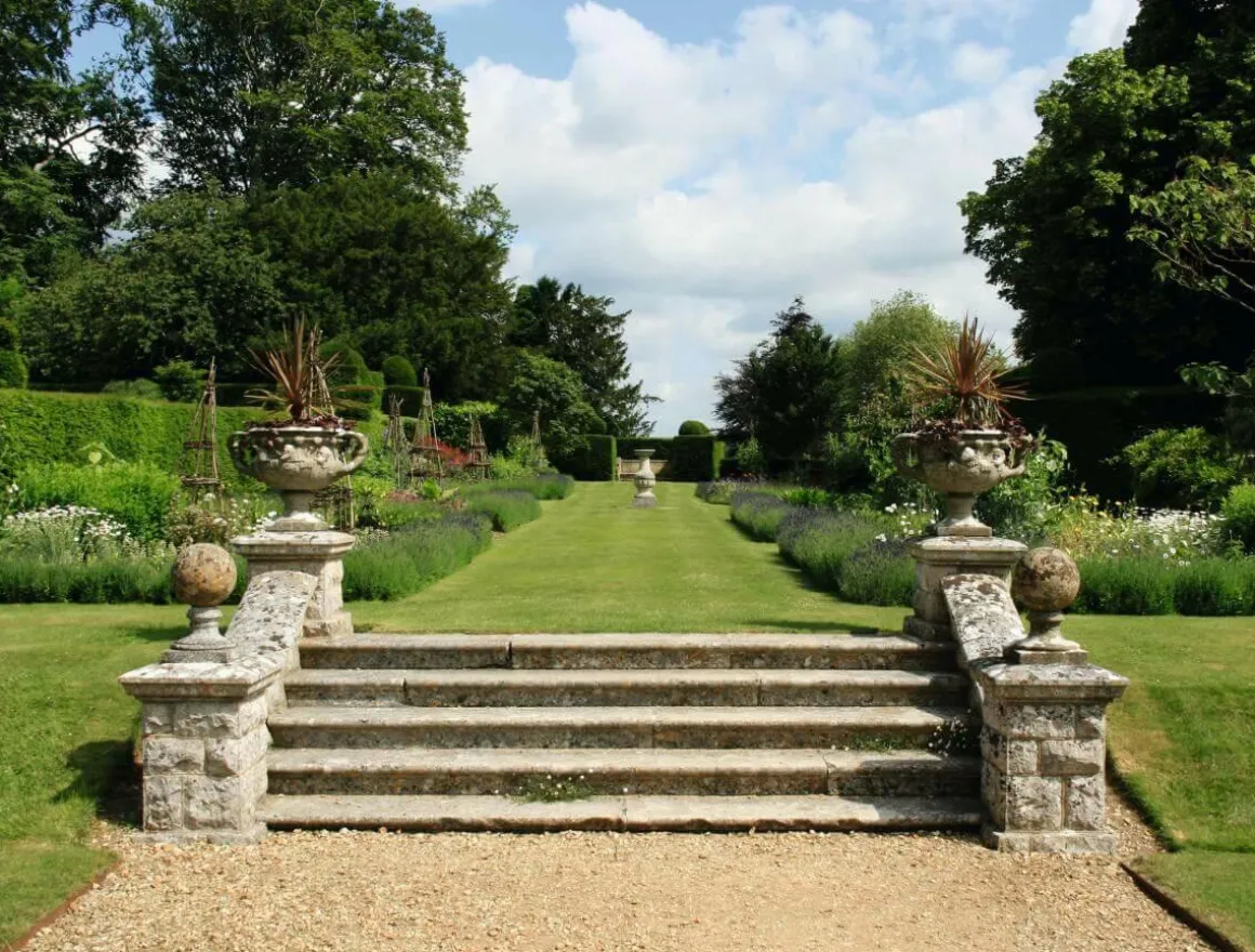 Royale Pflanzenkunst: XXL-Dekobanner mit Schlosspark und vielen malerisch-floralen Details