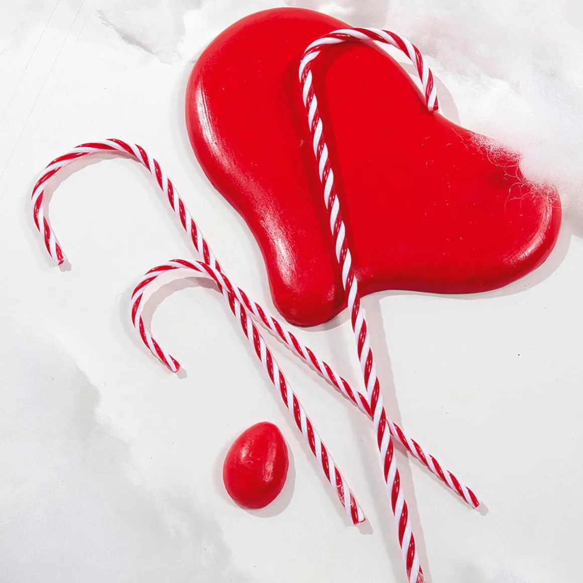Sweet Candy Cane! Zuckerstangen sind dekorativ und vielseitig eisetzbar. Als ausgefallener Christbaumschmuck, zum Streuen und Dekorieren in Vasen, als Tischschmuck während der Weihnachtszeit oder für Kinder- und Geburtstagsparties. Das klassische rot-weiß gedrehte Spiralmuster bietet einen tollen Blickfang und lässt sich sehr gut mit anderen Materialen und Farben kombinieren. XXL Food Attrappe aus Kunststoff. Preis per Pack á 5 Stück.