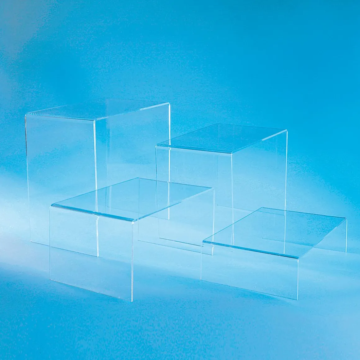 aus glasklarem Acryl, individuelle Anwendungsmöglichkeiten durch vielfältige Kombinationen, um Kratzer auf den Präsentern zu vermeiden, ist eine bunte Schutzfolie angebracht, die sich leicht abziehen lässt, Preis per 4tlg. Set