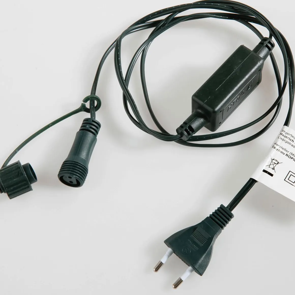 Grünes PVC-Kabel mit Euro-Flachstecker für den Innenbereich, 230 Volt.