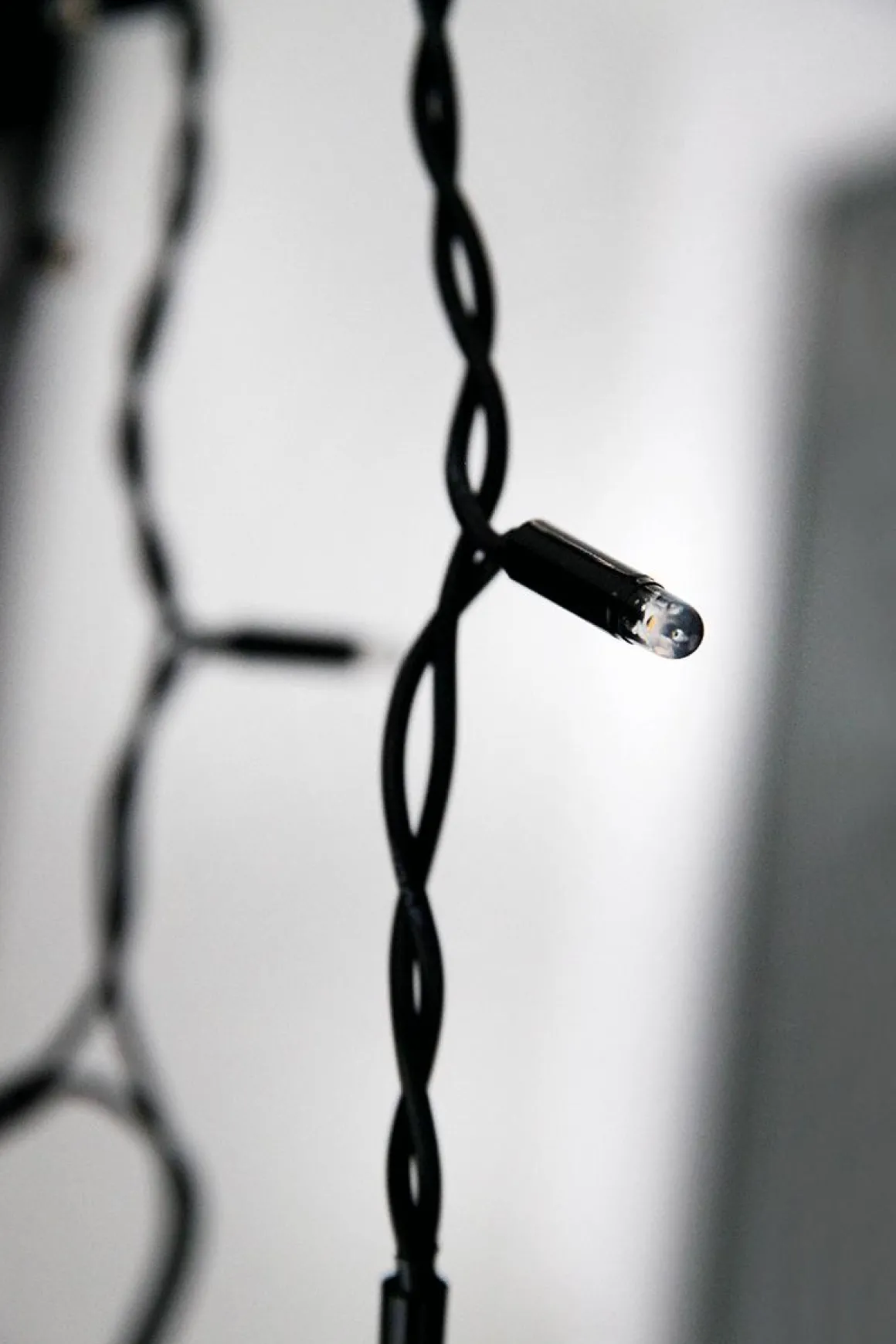 Dieser strahlend schön blinkende LED-Lichtervorhang sorgt für stimmungsvollen Lichterglanz im Außenbereich während der Weihnachtszeit. 20% der LEDs blinken in kurzen Abständen und erzeugen so ein schönes Lichtspiel. Den Funkeleffekt kann man nicht ausschalten. Unser LED Profi Lichtsystem IP67 ist in der technischen Ausführung besonders hochwertig, einfach in der Montage und vielseitig kombinierbar. Das angebotene Zubehör erlaubt eine große Vielfalt von Kombinationen, das Stecker-Buchsen-Verbindungssystem ermöglicht Ihnen sichere und schnelle Installationen. Somit lassen sich ganze Fassaden mit nur einer Steckdose dekorieren. Zu beachten ist dabei die technisch zulässige maximale Leistung der gekoppelten Systemkomponenten von 450 Watt. Extrem robust und für den Dauereinsatz im Freien konzipiert – alle Komponenten sind aus einem hochwertigen Gummikabel gefertigt, die einzelnen LED Dioden sind zum Schutz vor äußeren Einflüssen in Polycarbonat-Hülsen eingegossen und nicht austauschbar. Die Erfüllung der Norm IP67 gewährleistet maximale Sicherheit und hohen Schutz gegen Feuchtigkeit und Staub.