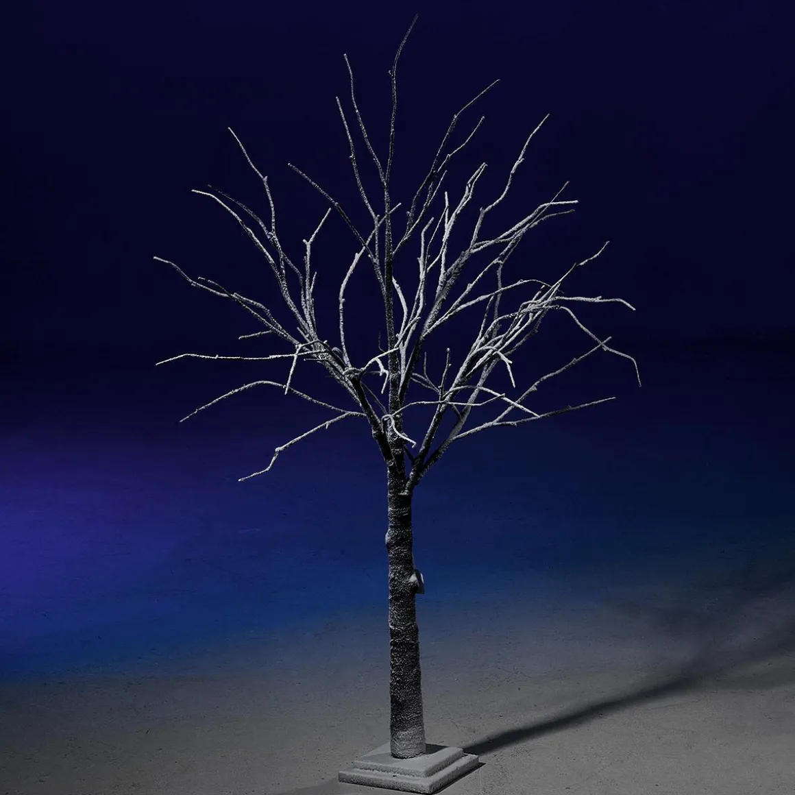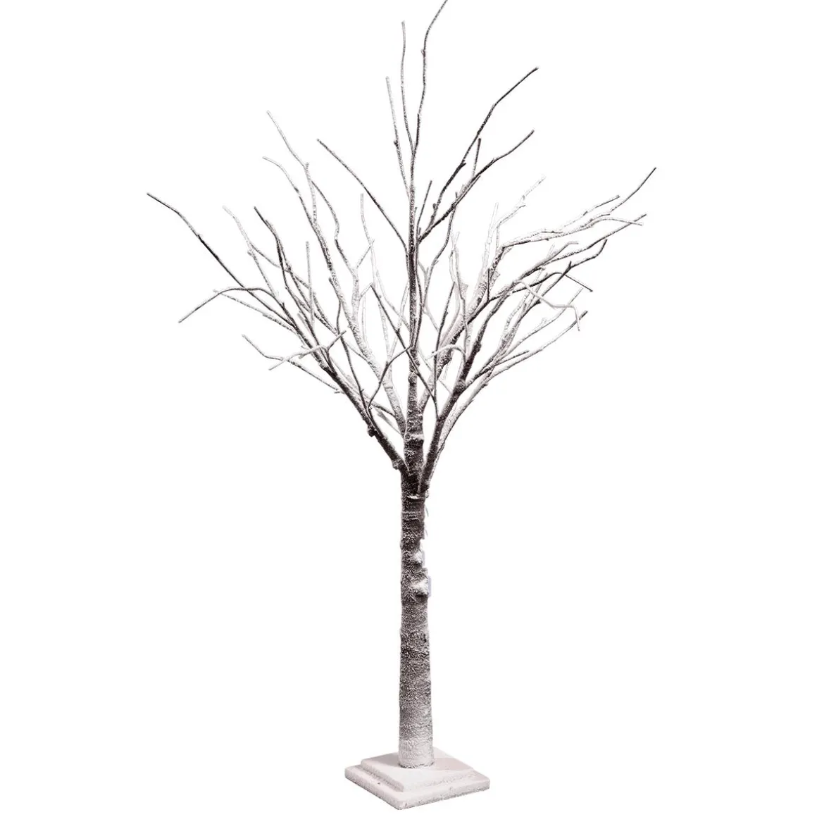 Winterlich beschneiter Deko-Baum mit authentischer Rindenoptik und kippsicherem Stufensockel. Die gewollt ungleichmäßige Anordnung der Zweige lässt den Winterbaum aus Kunststoff besonders echt aussehen. Für die Gestaltung von Winterlandschaften, zum Beispiel im Einkaufszentrum oder auf Theaterbühnen ist dieser blattlose Kunstbaum perfekt geeignet. Preis per Stück.