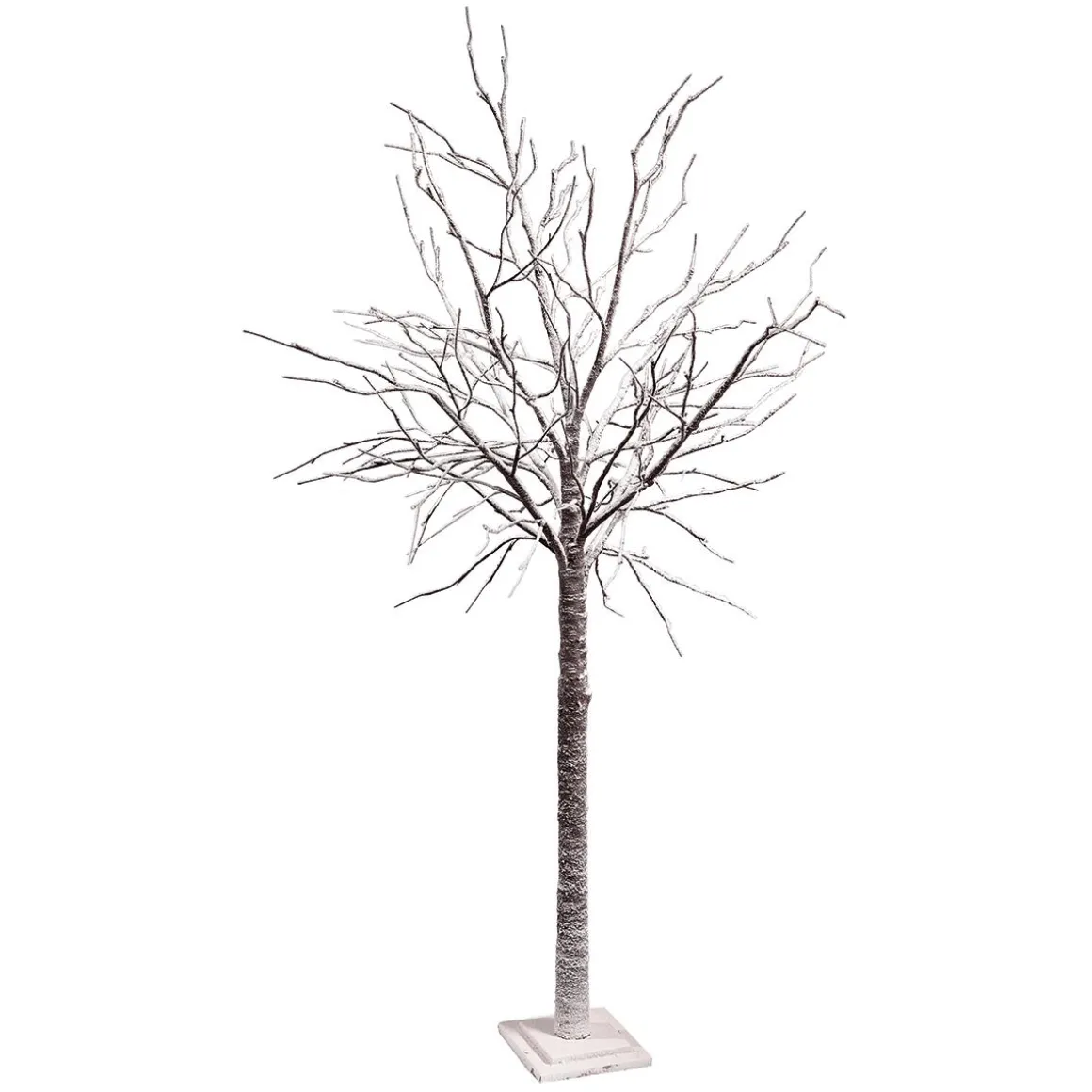 Winterlich beschneiter Deko-Baum mit authentischer Rindenoptik und kippsicherem Stufensockel. Die gewollt ungleichmäßige Anordnung der Zweige lässt den Winterbaum aus Kunststoff besonders echt aussehen. Für die Gestaltung von Winterlandschaften, zum Beispiel im Einkaufszentrum oder auf Theaterbühnen ist dieser blattlose Kunstbaum perfekt geeignet. Preis per Stück.