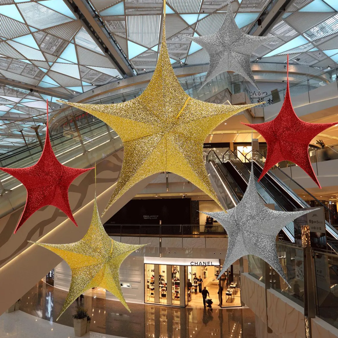Der hochwertige Stoff verleiht dem Stern ein edles Aussehen und das funkelnde Glitter-Finish sorgt für eine zauberhafte Atmosphäre. Die Handhabung des Faltsterns ist kinderleicht und dank des beiliegenden Reißverschlusses können Sie den Stern einfach aufstellen oder aufhängen. Egal ob als Schaufenster- oder Heimdekoration, dieser Faltstern ist vielseitig einsetzbar und wird zum Highlight in jedem Raum.