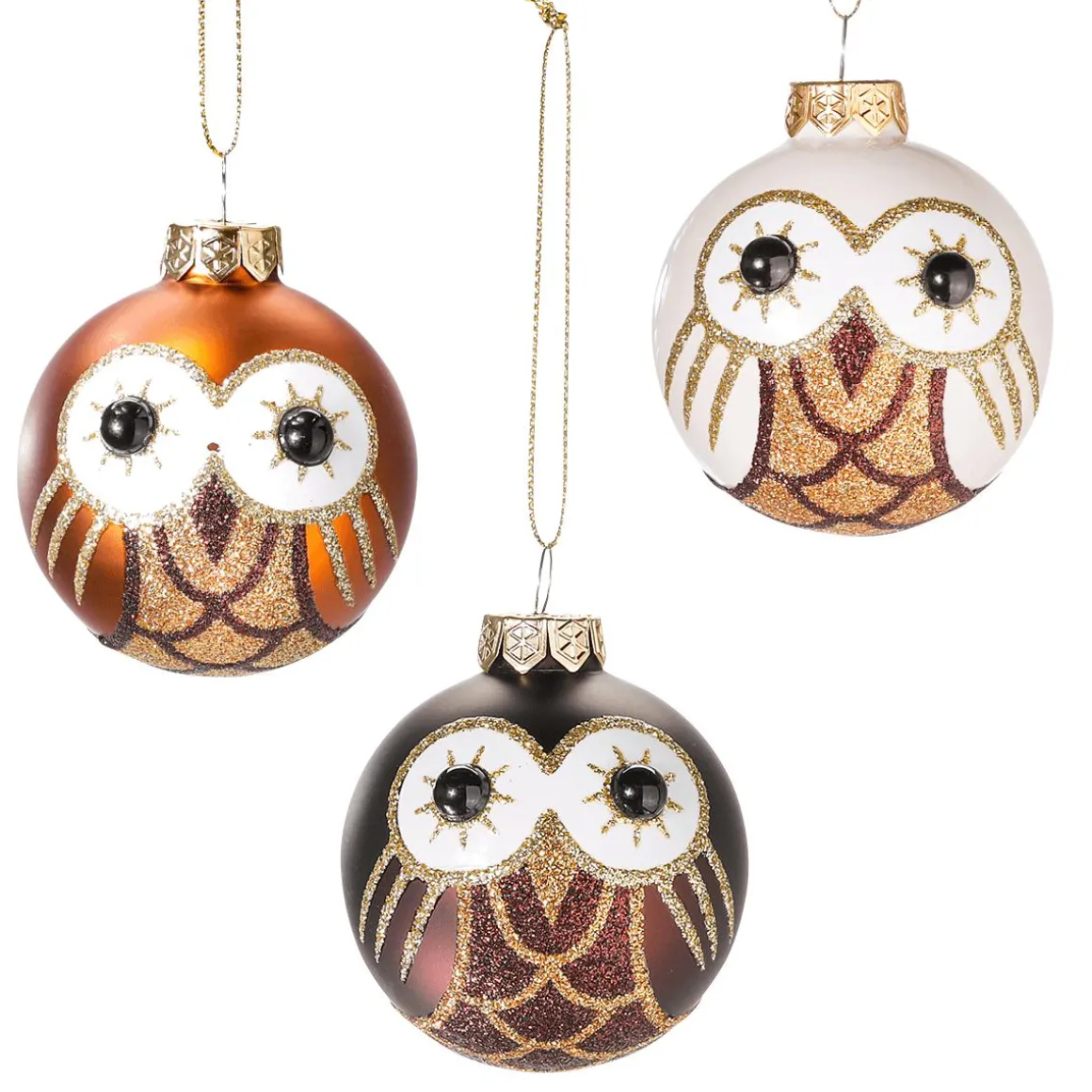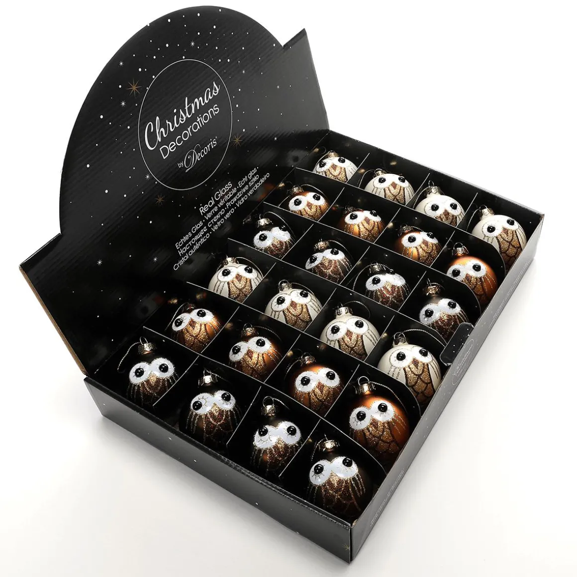 Deko Hänger Glas Kugel „Eule“ 24 Stück In Der Box