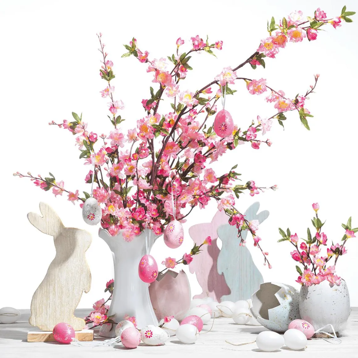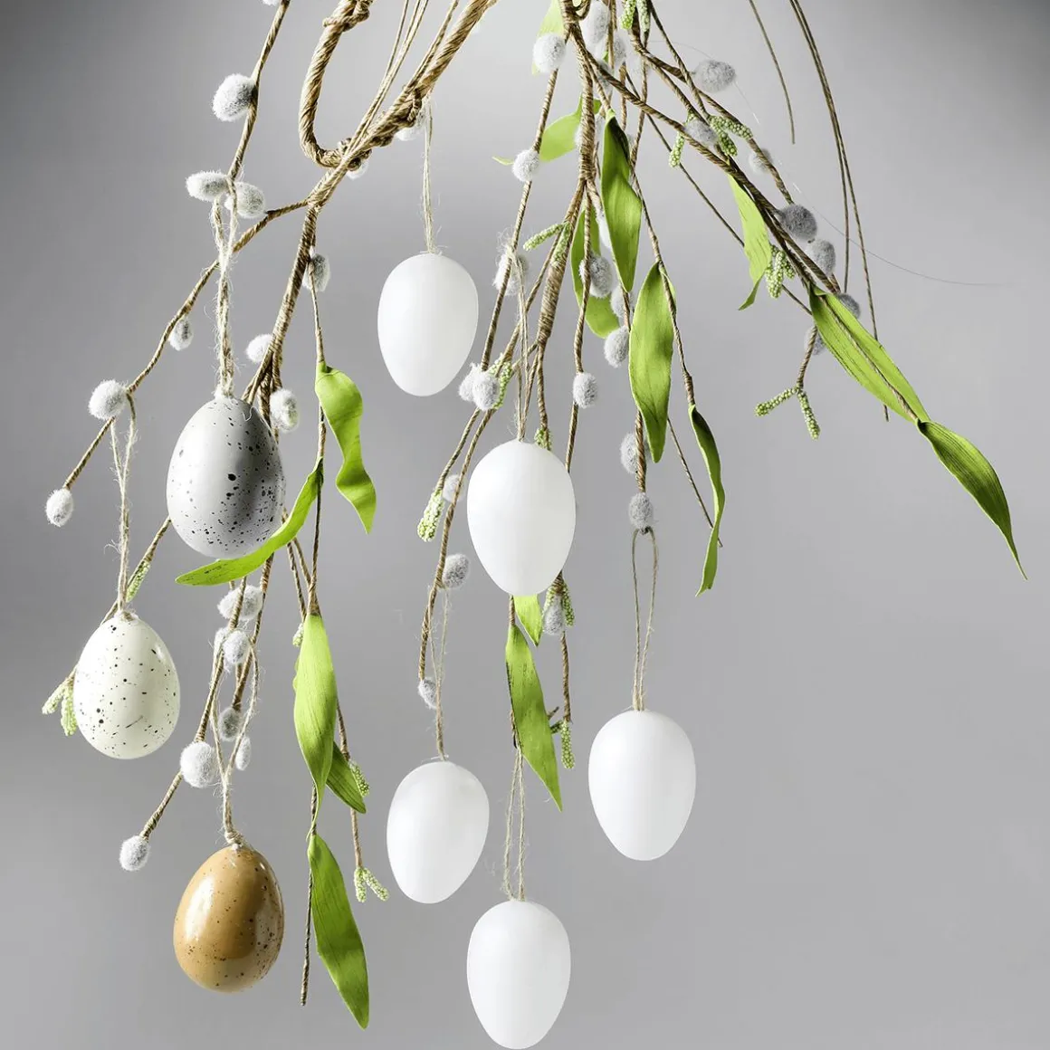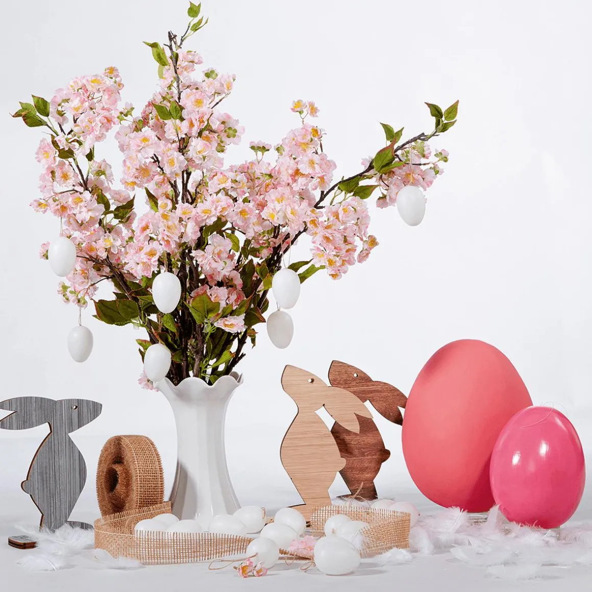 Deko Eier in strahlendem Weiß sind die Allrounder und den Ostereiern. Vielseitig und immer wieder verwendbar, sind sie perfekt für Osterdekorationen im minimalistischen Stil oder als Grundlage fürs Osterbasteln. Ob bemalt, beklebt, umgarnt oder gefärbt – die kreativen Gestaltungsideen sind nahezu unbegrenzt. Die Ostereier mit weißem Aufhänger sind aus robustem Kunststoff gefertigt und eignen sich somit gut für den Außenbereich zum Schmücken von und Büschen und Bäumchen. Preis per Pack à 24 Stück.