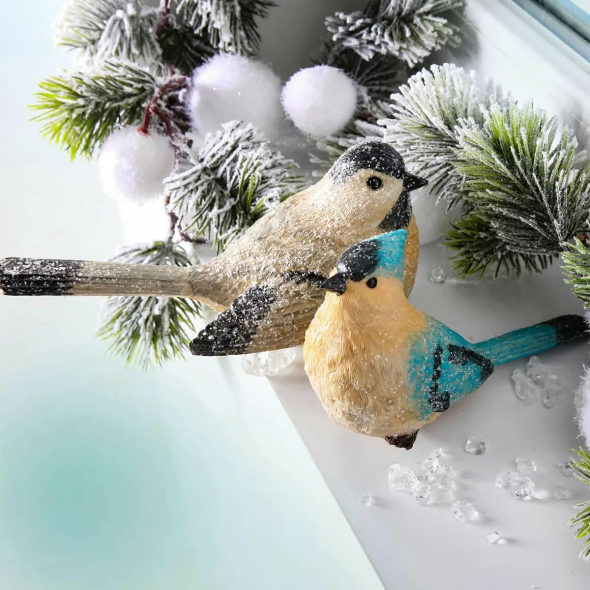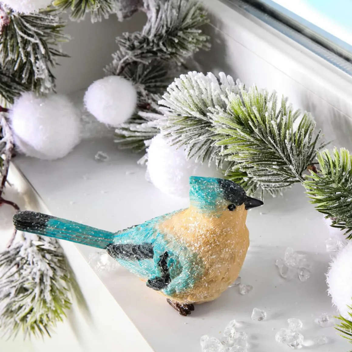 Dieser hübsche Dekovogel ist perfekt für winterliche Dekoration auf dem Fensterbrett, Balkon, der Terrasse oder im Garten. Diese dekorative Tierfigur ist frostbeständig und ideal für Innen- und Außendekorationen. Bemalt und mit irisierendem Glitzer verziert. Hergestellt aus Polyresin (Kunststein).