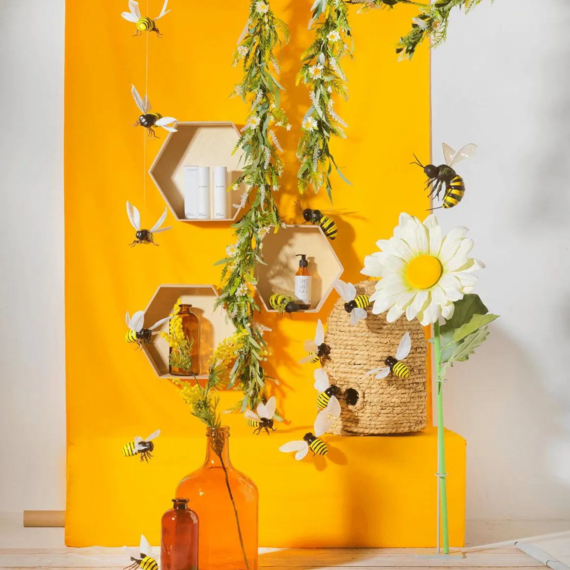 Wunderschöne Bienen-Kette für die Frühlings- und Sommerdeko und das perfekte Accessoire für Ihr Schaufenster oder Ihre Verkaufsfläche. An dieser Dekokette sind 7 Bienen aus Kunststoff mit einer länge von jeweils 12 cm angebracht. Preis per Stück.