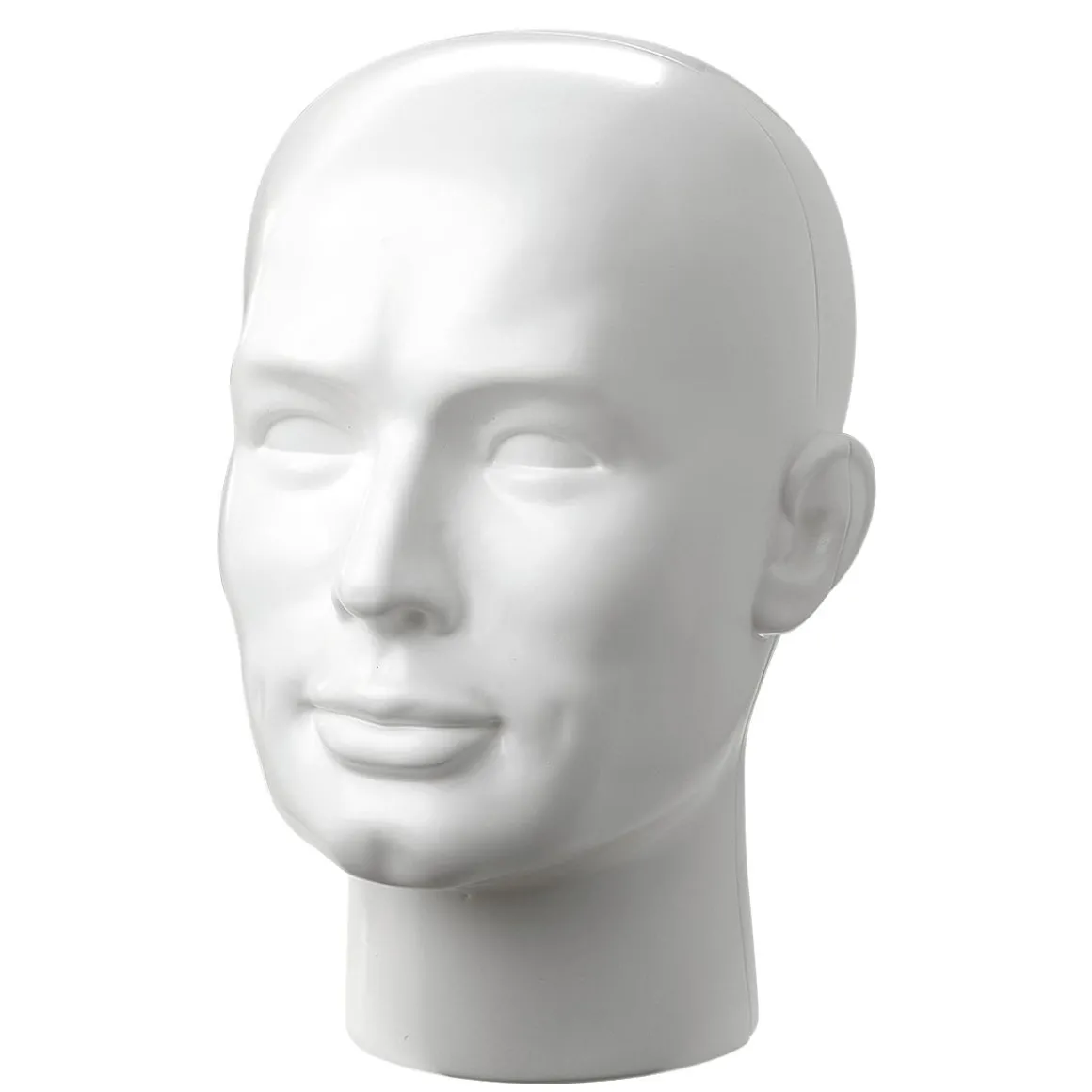 Vollplastischer Herren-Kopf aus Kunststoff. Als Deko oder zur Präsentation von Kopfhörern, Brillen, Hüten, Mützen und Perücken geeignet. Preis per Stück.