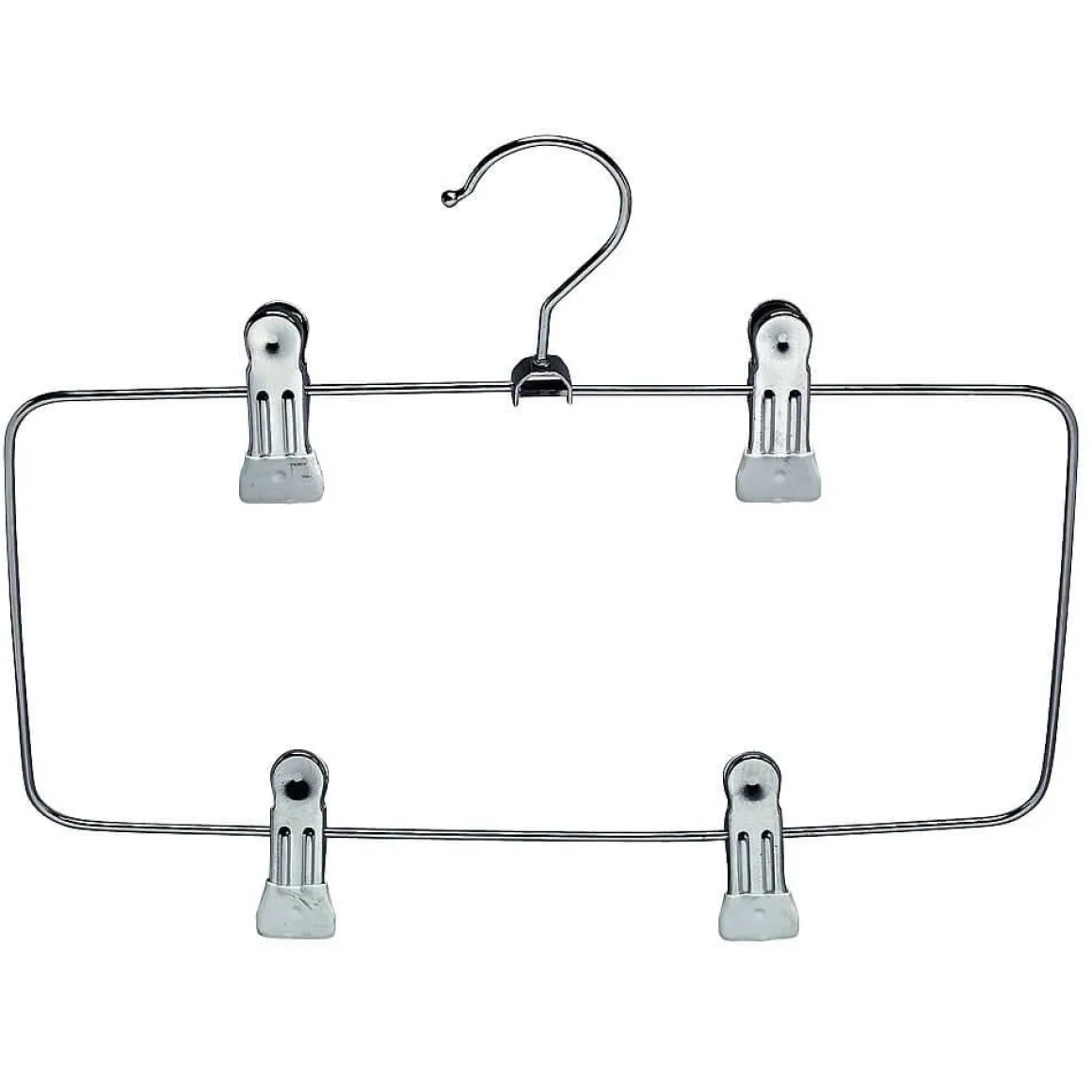 Langlebiger und tragender Metallbügel mit stufenlos verschiebbaren Metallklammern und Vierkantstab. Die Klammern sind im Klemmbereich schwarz rutschhemmend beschichtet und hinterlassen keine Abdrücke an Textilien und Accessoires. Nickelfrei verchromter Metallbügel mit fest sitzendem Aufhänge-Haken. Hochwertige Qualität „Made in Germany“. Preis per Stück.
