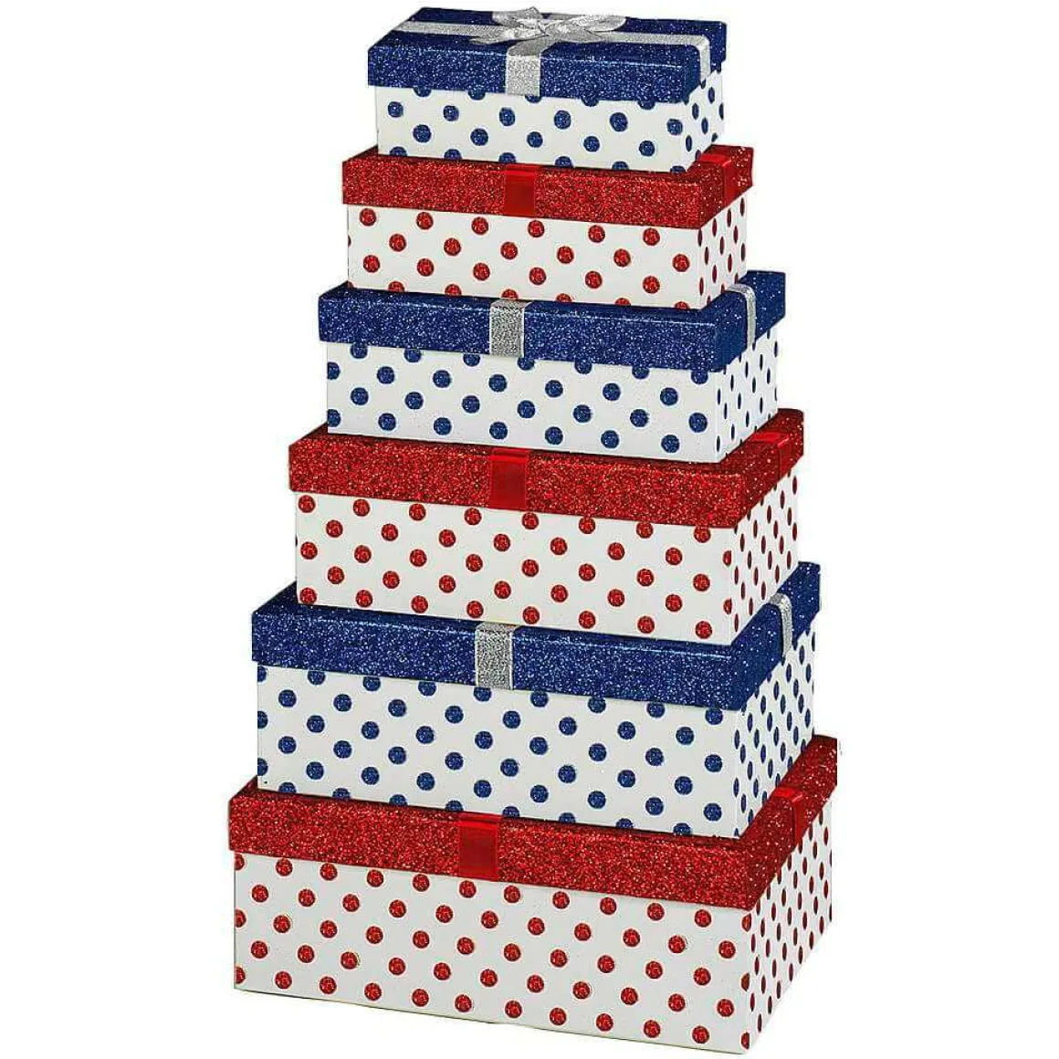 Geschenkboxen-Set Weiß/rot/blau, 6tlg.