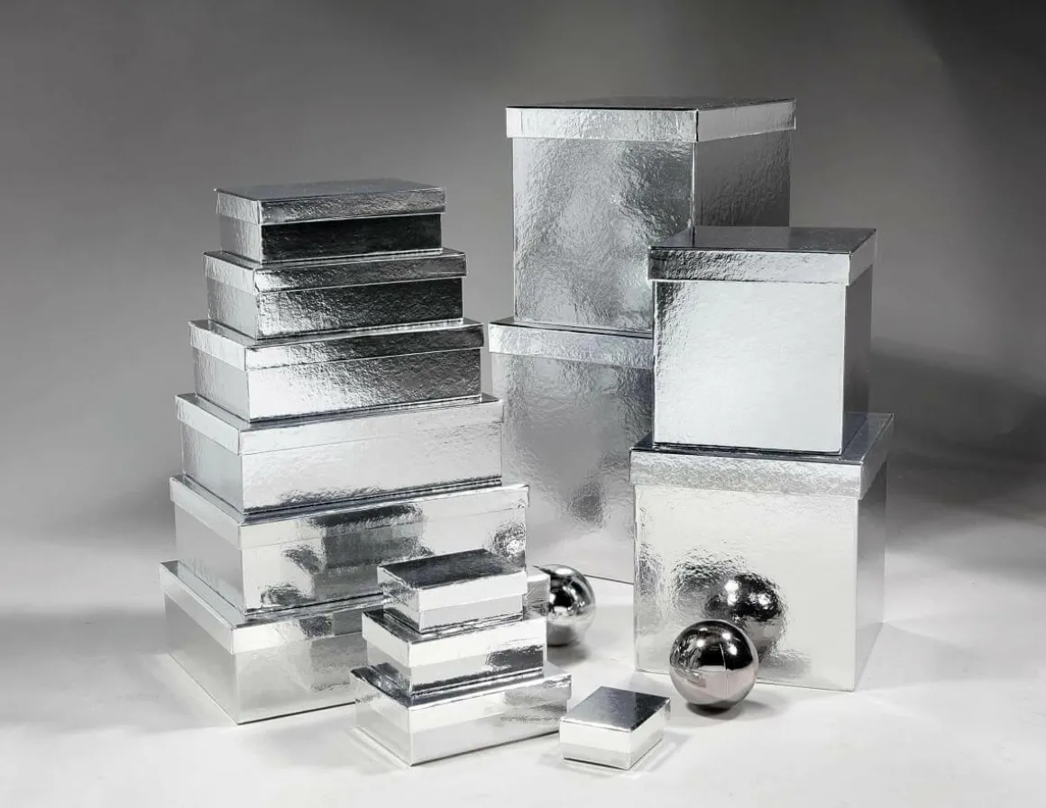 ideal als Dekoration oder als Geschenkverpackung, formstabiler Karton mit praktischem Deckel, platzsparend ineinander verstaubar, Preis per 4tlg. Satz