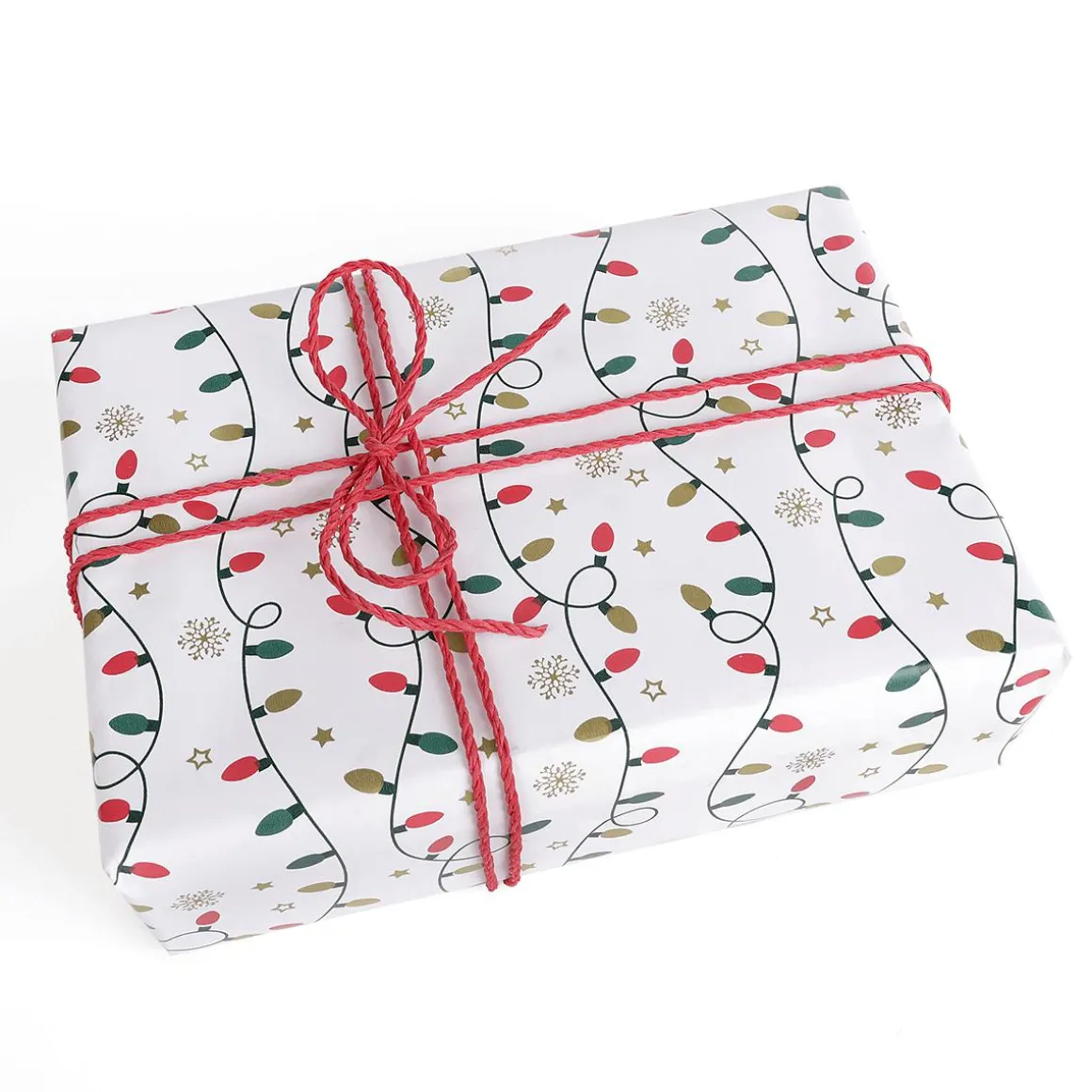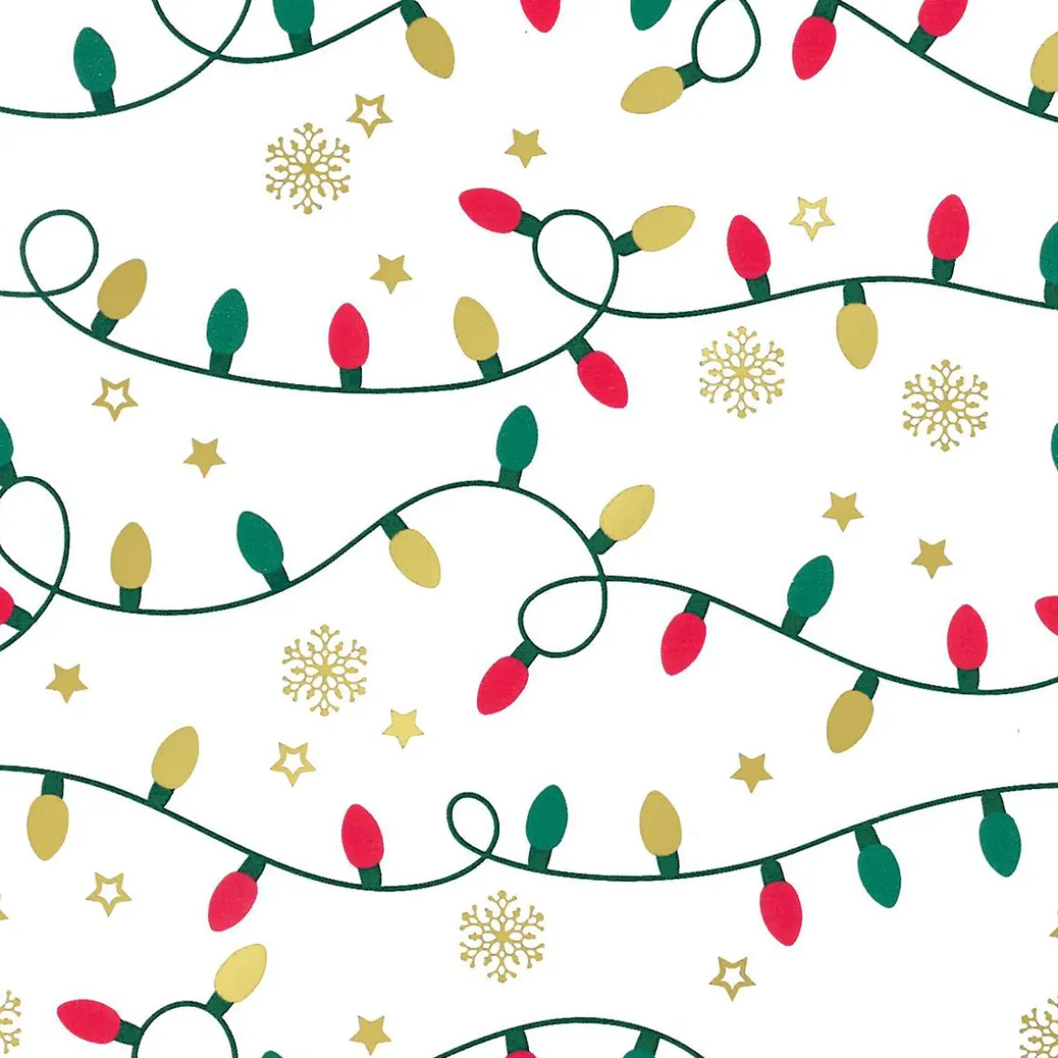 beschichtetes Geschenkpapier mit bunten Lichterkettemuster 80 g/m², einseitig bedruckt. Preis per Rolle à 50 m