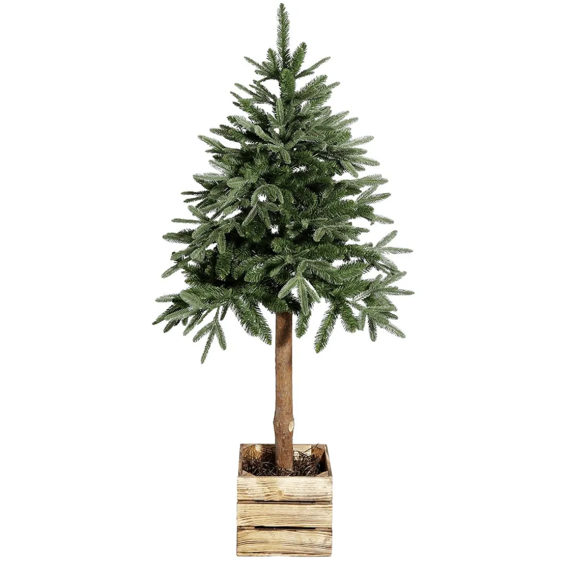 Die Tannen stehen fest und sicher in einem hochwertigen Holztopf, der nicht nur Stabilität gewährleistet, sondern auch eine natürliche Ästhetik in Ihr Zuhause bringt. Die Kombination von grünen Nadeln und warmem Holz verleiht Ihrem Raum eine harmonische Atmosphäre. Kein lästiges Nadeln, kein Gießen – unsere künstlichen Tannen ersparen Ihnen den Aufwand der Pflege. Gleichzeitig tragen Sie zum Schutz unserer Umwelt bei, da unsere Bäume wiederverwendbar sind und keinerlei Abfall verursachen.