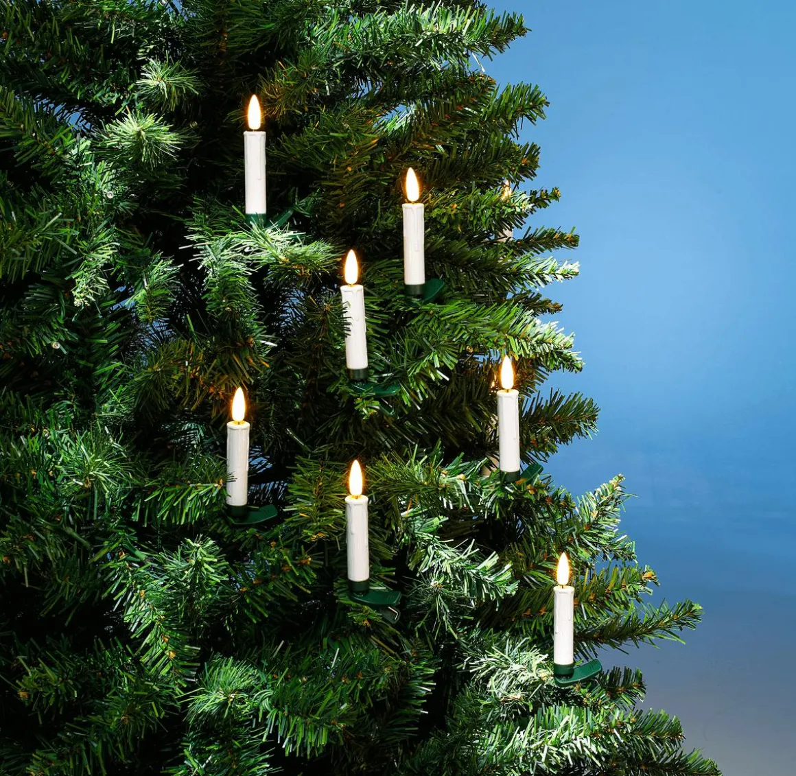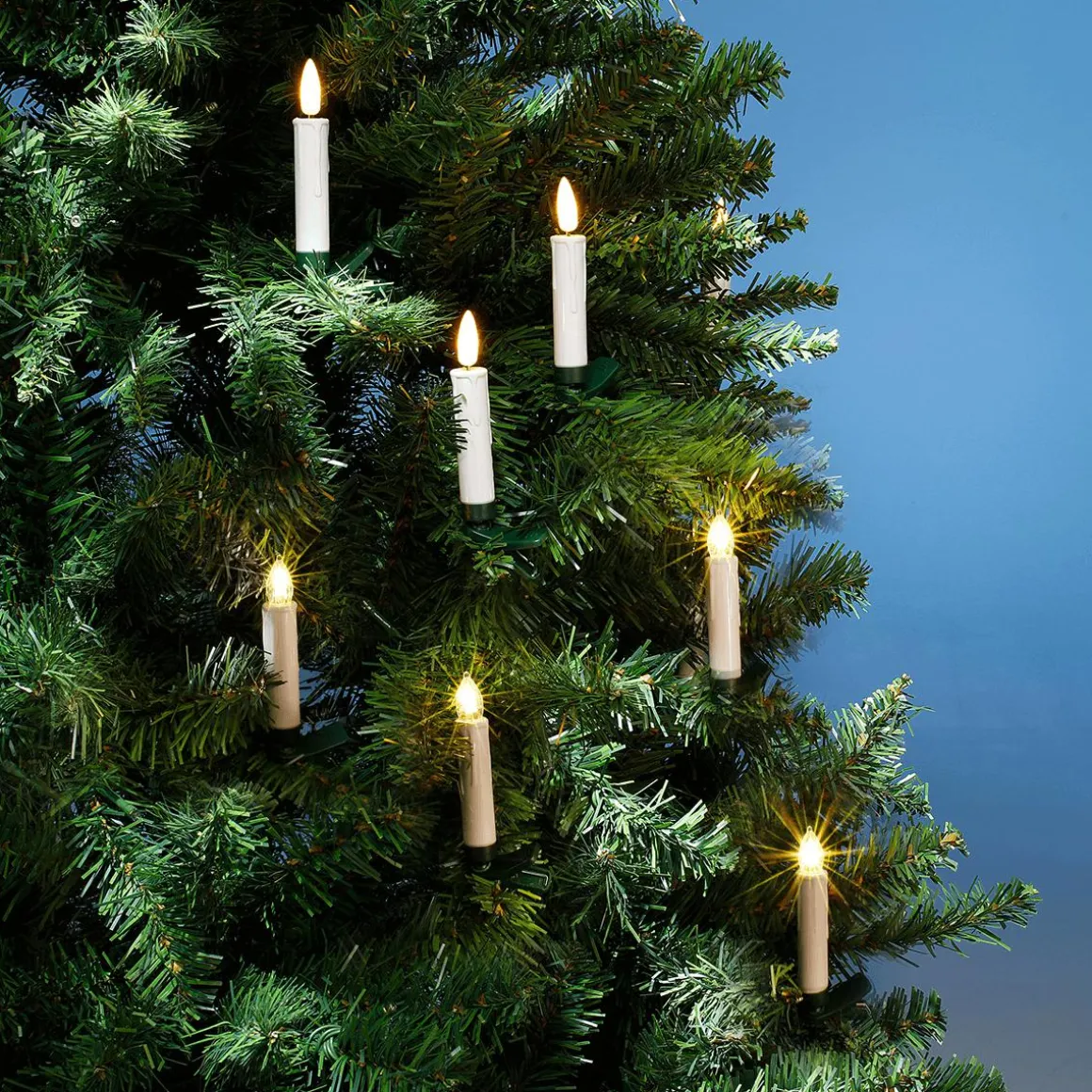 Die dekorativen aufsteckbaren LED-Kerzen sind eine ideale weihnachtliche Dekoration und sorgen für eine festliche Stimmung. Jede Weihnachtskerze ist etwa 10 Zentimeter groß und mit einem grünen Clip ausgestattet. Hervorragend eignen sich die Kerzen für Tür- und Fensterdekorationen, oder ganz traditionell am Weihnachtsbaum. Die Kerzen werden mit AAA-Batterien betrieben (nicht im Lieferumfang enthalten) und können mit der in der Packung enthaltenen Fernbedienung gesteuert werden. Betriebszeit ca. 100h.