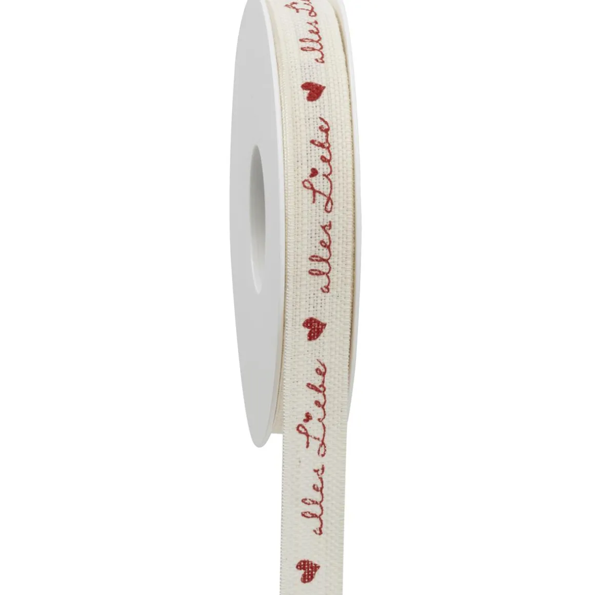 Nachhaltiges Geschenkband 15mm, 18 m, mit der Aufschrift „All love“, aus 100% biologisch abbaubarer Baumwolle.