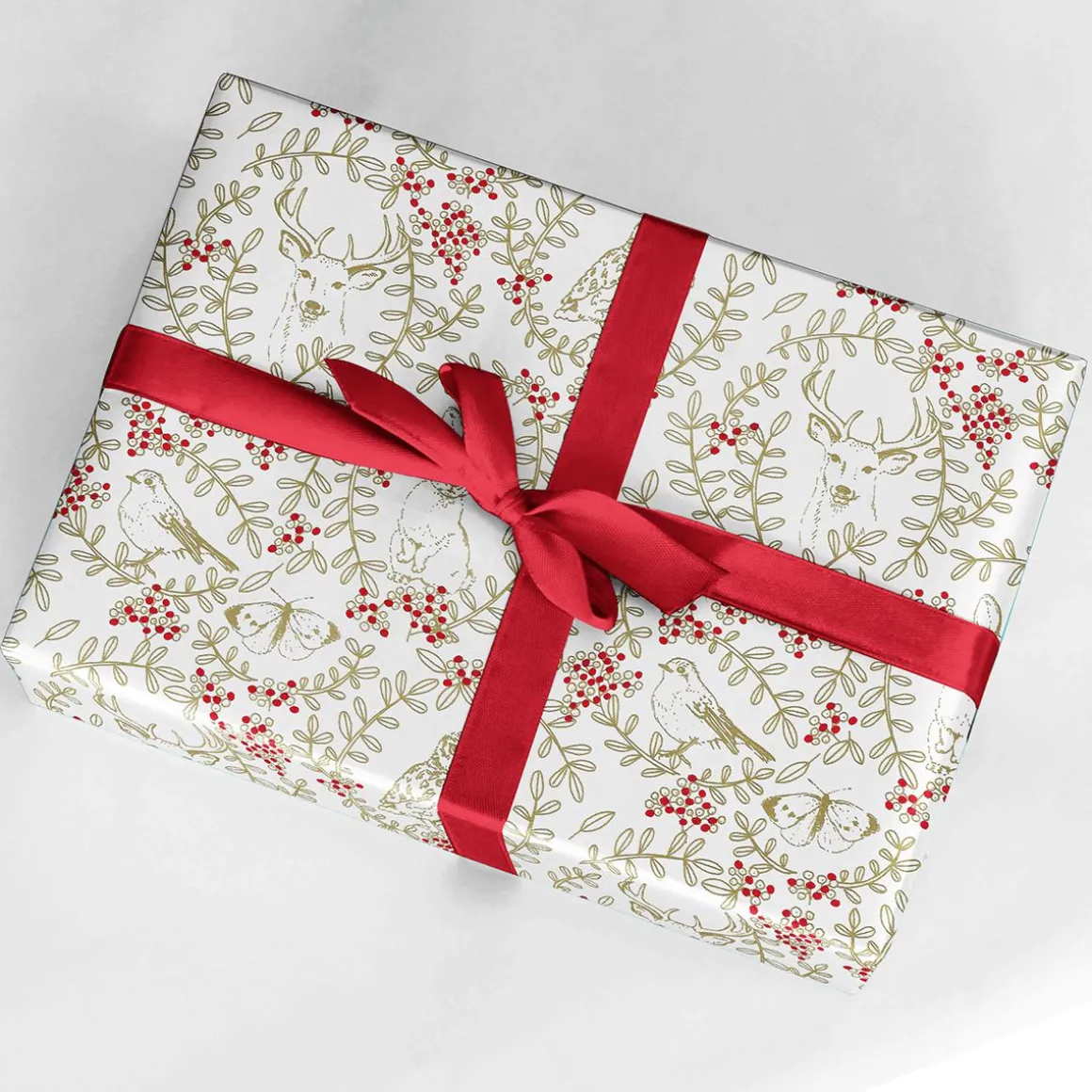 Für alle, die alles wollen: Mit diesem außergewöhnlichen Weihnachtsgeschenkpapier brauchen Sie sich nicht zu entscheiden. Einseitig bedruckt auf weißem, für Nachhaltigkeit zertifiziertem Papier strahlen Tiere, Ranken und rote Beeren den Betrachtern entgegen. Vögel, Hirsche, Hasen, Schmetterlinge sind umrankt von Beeren – das wirkt sowohl edel, als auch nostalgisch-filigran. Neben den charmanten Motiven überzeugt unser schönes, hochwertiges Geschenkpapier durch seine Umsetzung. Die Motive sind in edlem Golddruck gehalten, die Beeren leuchten in satten Rottönen. Dafür verantwortlich ist unser professionelles Druckverfahren, dass auch auf ökologischem Geschenkpapier die Farben unwiderstehlich schön zur Geltung bringt.