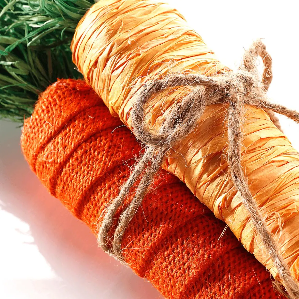 Deko-Karotten-Set bestehend aus drei Möhren, 29 cm hoch, aus Hartschaum mit Bast und Jute ummantelt. Preis per Stück