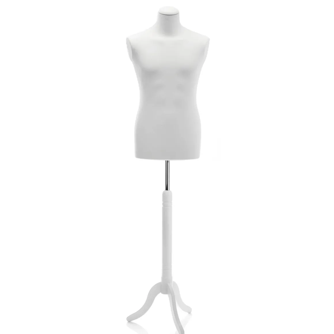 Schneiderpuppe Männlich Weiß Auf Weißem Dreibeinständer 148 – 178 Cm Hoch
