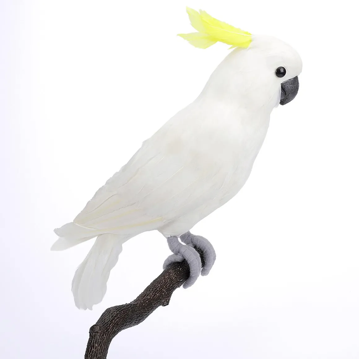 Sitzender Deko-Papagei Weiß-gelber Kakadu, 40 Cm
